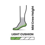 Unisex pohodne nogavice Smartwool Hike Light Cushion Mid Crew združujejo moč in udobje ZQ-certificirane, odgovorno pridobljene merino volne, ki poskrbi za odlično uravnavanje temperature, odvajanje vlage in zmanjševanje vonjav. Nogavice so opremljene z recikliranim najlonom za večjo trajnost, izboljšano vzdržljivostjo, nove mrežaste zračne cone in še bolj popolnim prileganjem. Vse priljubljene Smartwool tehnologije ostajajo, da zagotavljajo celodnevno udobje in optimalno zmogljivost, medtem ko Mid Crew višina nudi dodatno zaščito in pokritost na poteh, lahkotno oblazinjenje po celotnem podplatu pa zagotavlja, da so stopala udobna tudi na neenakomernem terenu. Nogavice so idealne za daljše pohode, treking in aktivno preživljanje časa v naravi.